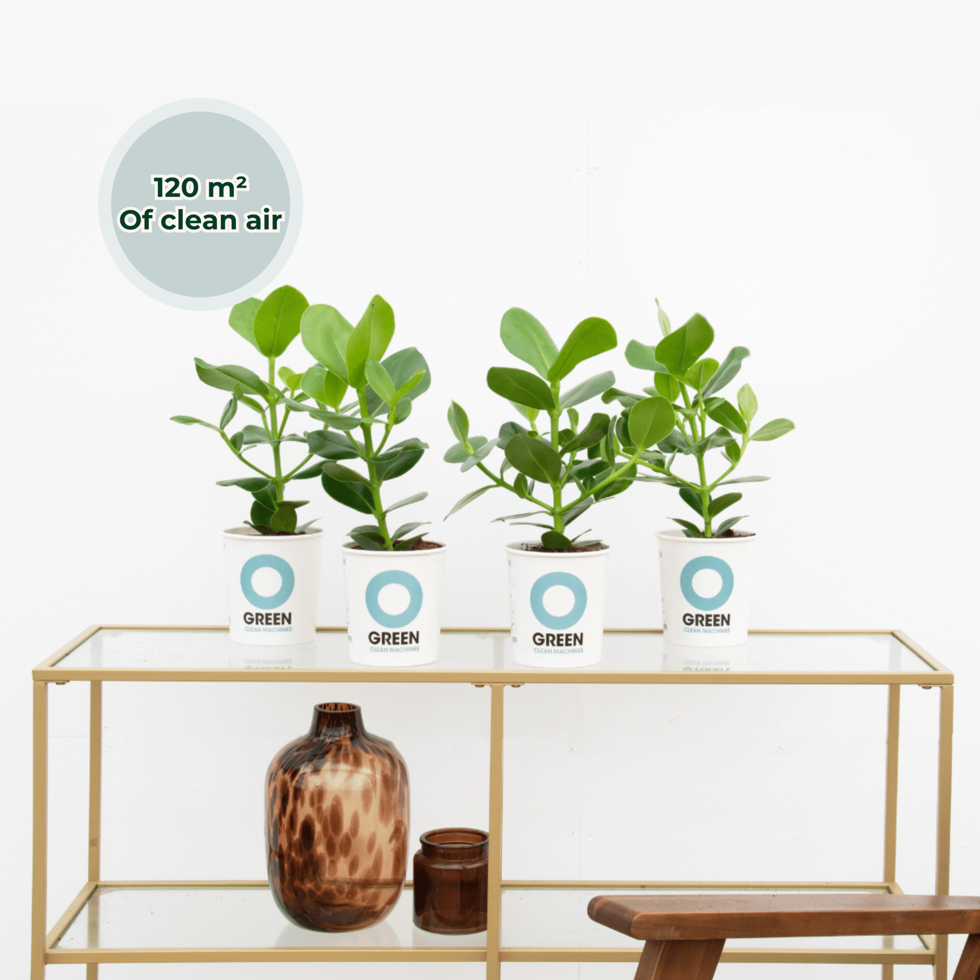 In diesem Paket erhalten Sie 4x Clusia Rosea Princess inklusive einer Flasche Pflanzennahrung! Dieses Paket reinigt insgesamt 120 m²!