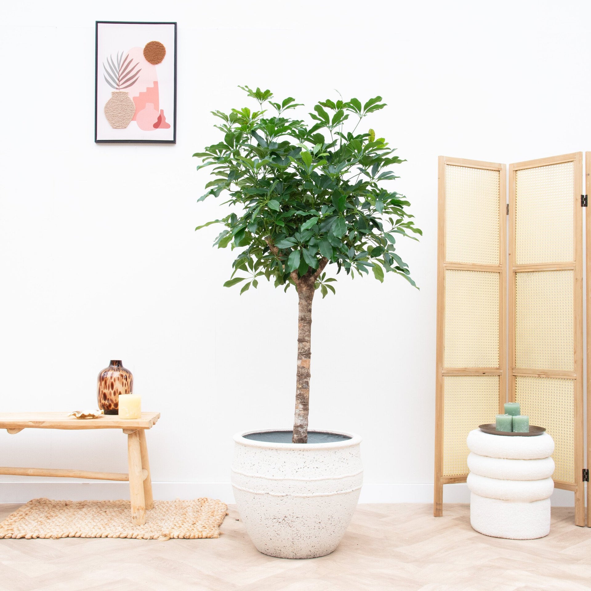 Die Schefflera am Stiel stammt ursprünglich aus Australien, ist aber heute in unseren niederländischen Wohnzimmern weit verbreitet. Denn die Schefflera ist eine pflegeleichte Zimmerpflanze, die sich schnell mit ihren eigenen Vorzügen anfreundet. Wussten Sie, dass diese Pflanze in China eine der bekanntesten Arten ist? Den Blättern der Zimmerpflanze wird nachgesagt, dass sie positive Energie enthalten und den Bewohnern Wohlstand bringen.