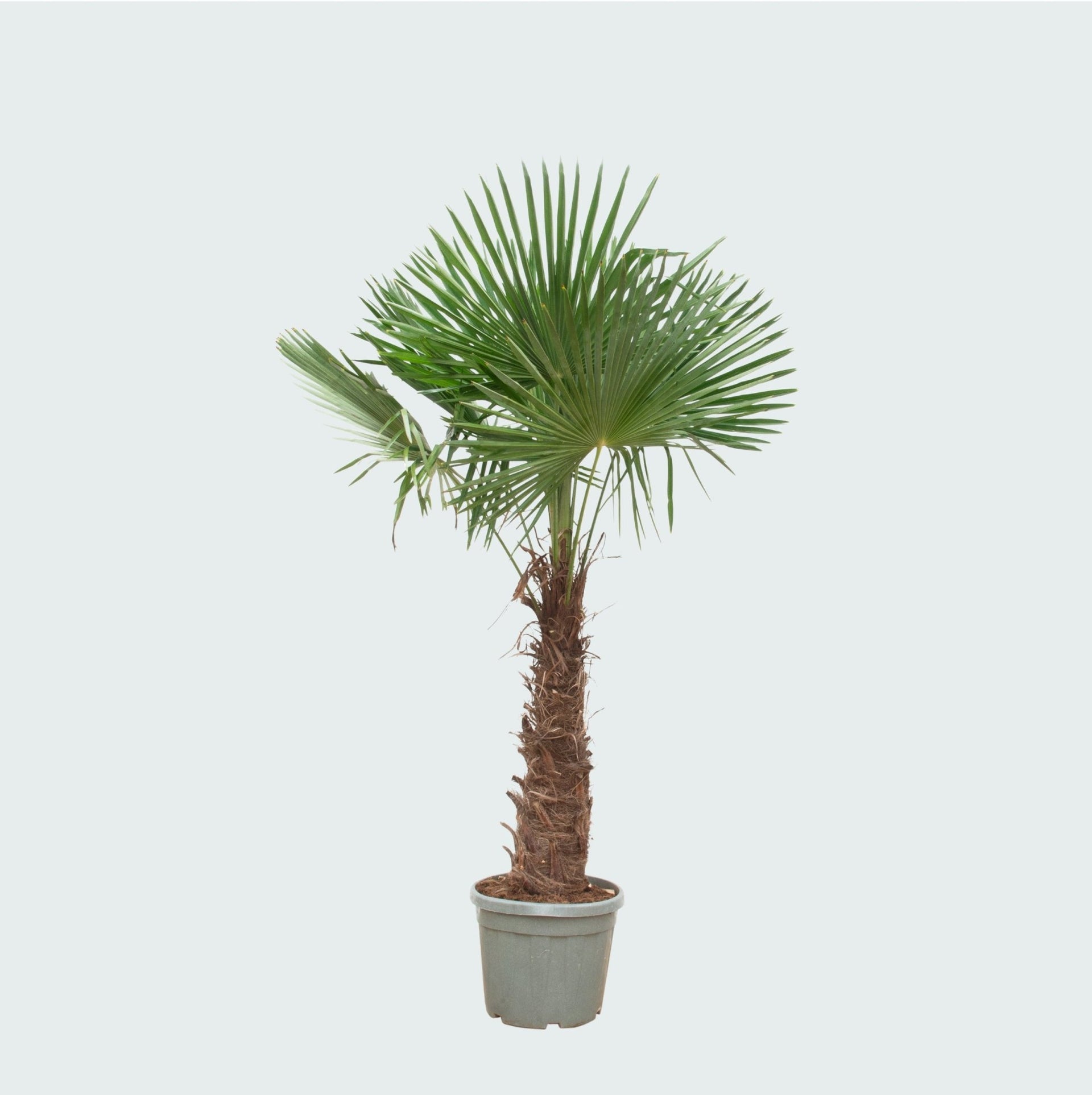 Die Trachycarpus ist eine kühle Freilandpflanze, die ursprünglich in den Höhenlagen des Himalayagebirges wächst. Der niederländische Spitzname der Trachycarpus ist Henneppalm oder Handpalme und sie gehört zur Familie der Aracaceae. Trachycarpus ist wegen seiner schönen fächerförmigen Blätter eine bekannte Gartenpflanze. Die Trachycarpus ist eine winterharte Palme, die unsere Winter im Freien sehr gut übersteht!