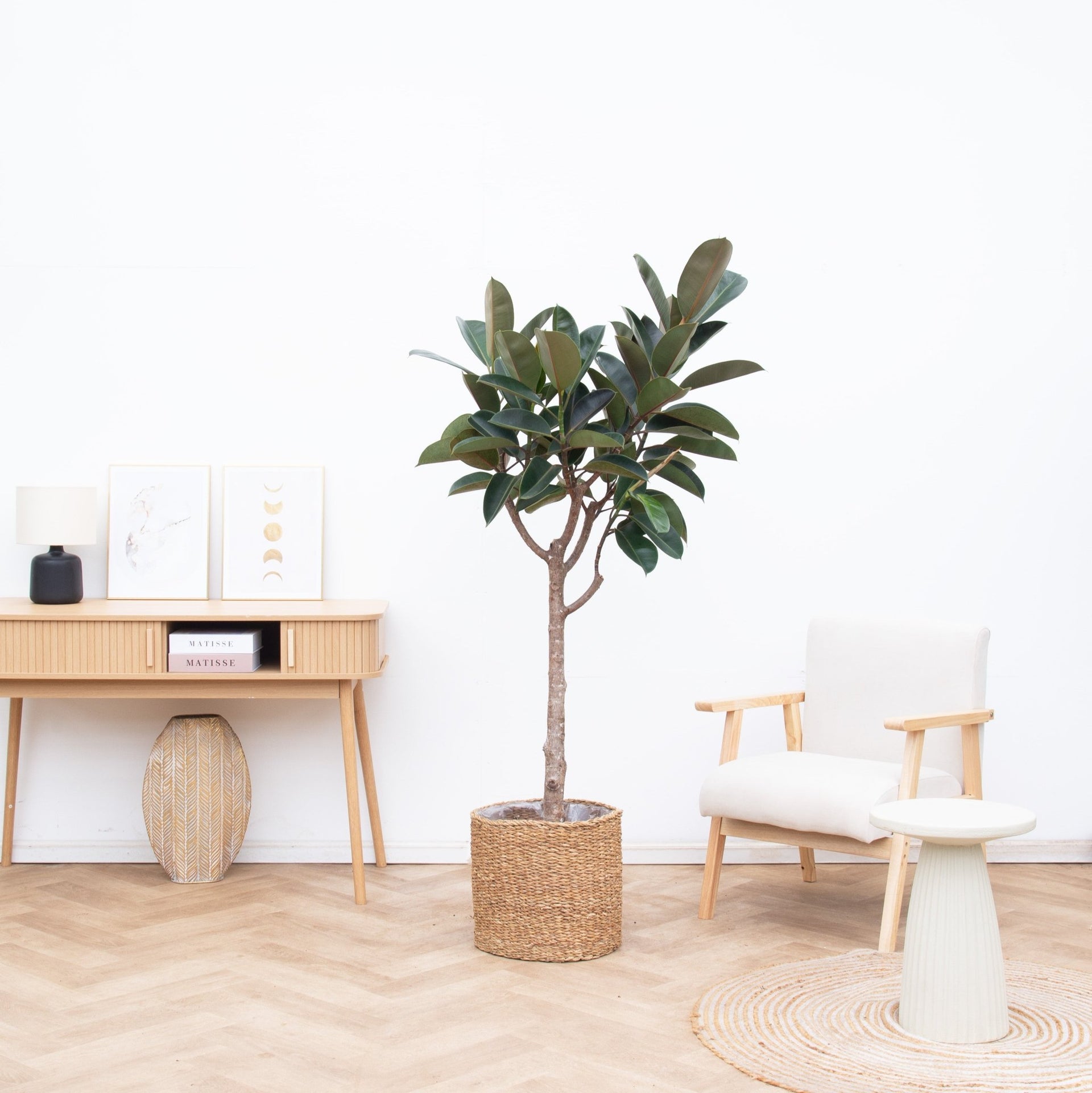 The Ficus Elastica Burgundy is a strong and robust houseplant that requires little care but adds a lot of atmosphere to your interior. With its shiny, deep red leaves and elegant trunk, it is a real eye-catcher. This plant thrives in a stable location and does not like being moved. Keep the leaves clean by wiping them occasionally with a damp cloth – this will keep them shiny and allow them to breathe better.