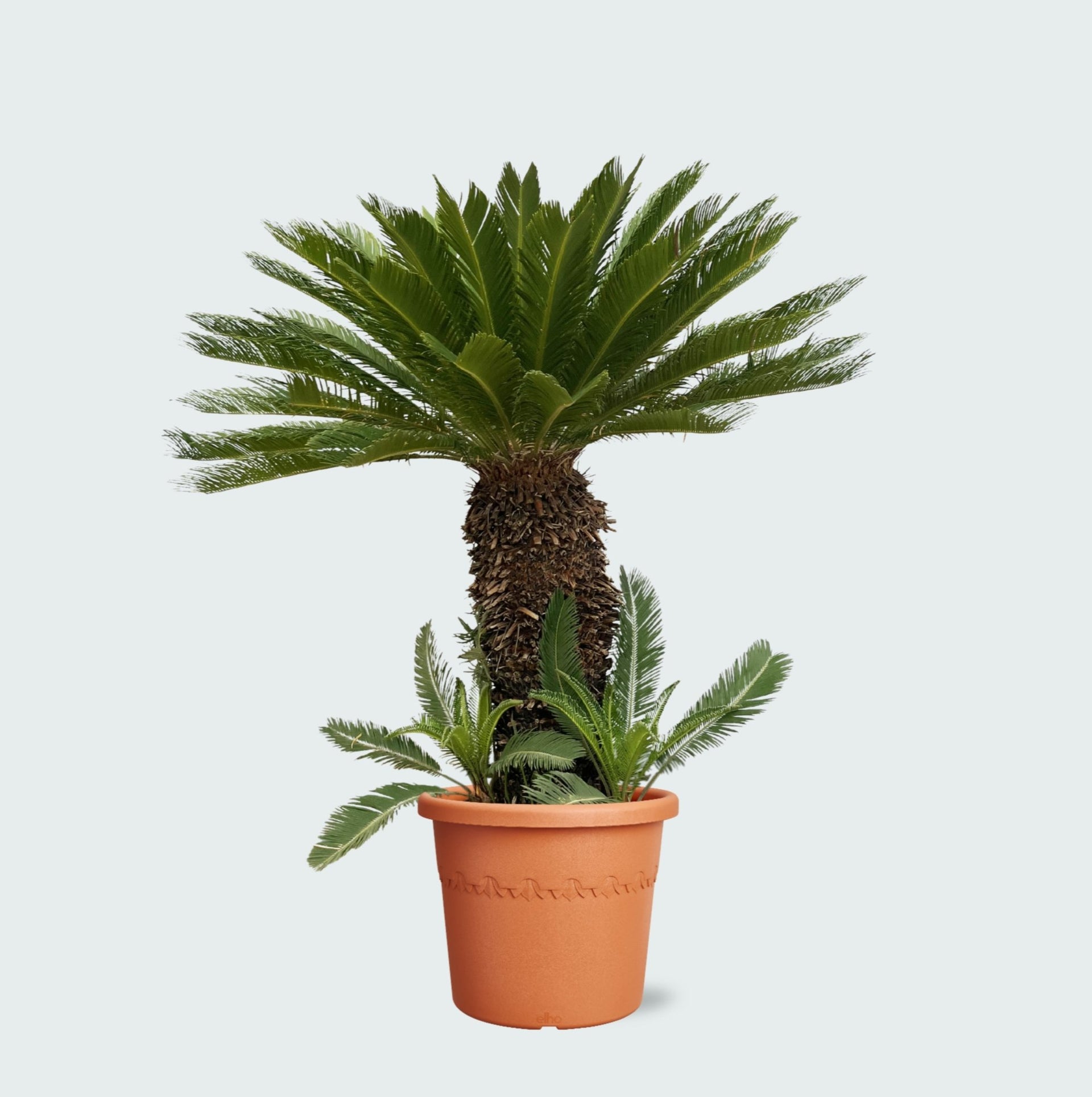 De Cycas Revoluta, ook wel de Varenpalm genoemd, is afkomstig uit Zuidoost-Azië. Deze stoere binnen én buitenplant zorgt voor tropische sferen in jouw interieur of tuin. De sierlijke bladeren op de stoere en robuuste stam zorgen ervoor dat de Cycas Revoluta erg populair is.