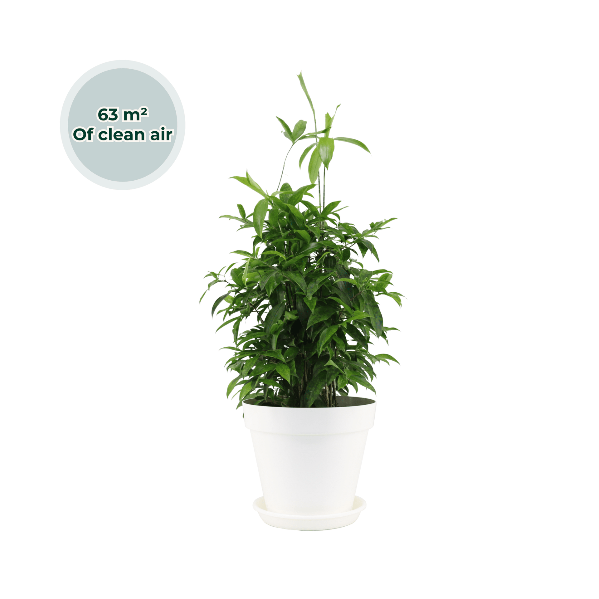 In ons Clean Machine-assortiment vind je alleen planten die in wetenschappelijke tests bewezen meer dan 7 m² lucht te kunnen zuiveren en boven gemiddeld te scoren op hun luchtzuiverende eigenschappen.