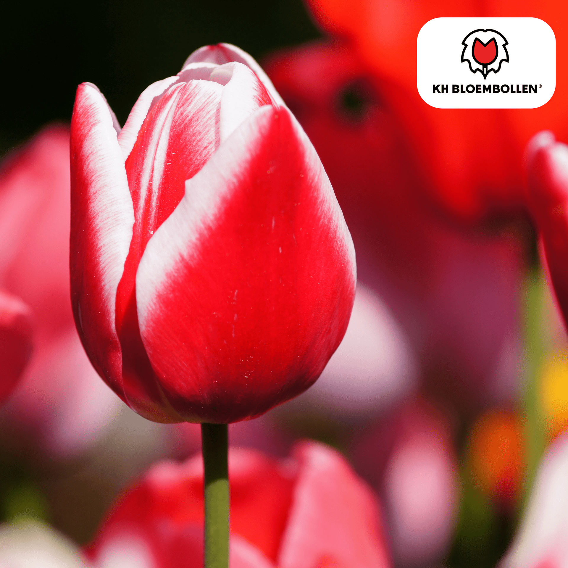 De tulp ‘Candy Apple Delight’ is een Nederlandse variëteit die opvalt door haar frisse rood-witte kleurstelling en speelse, sierlijke uitstraling.