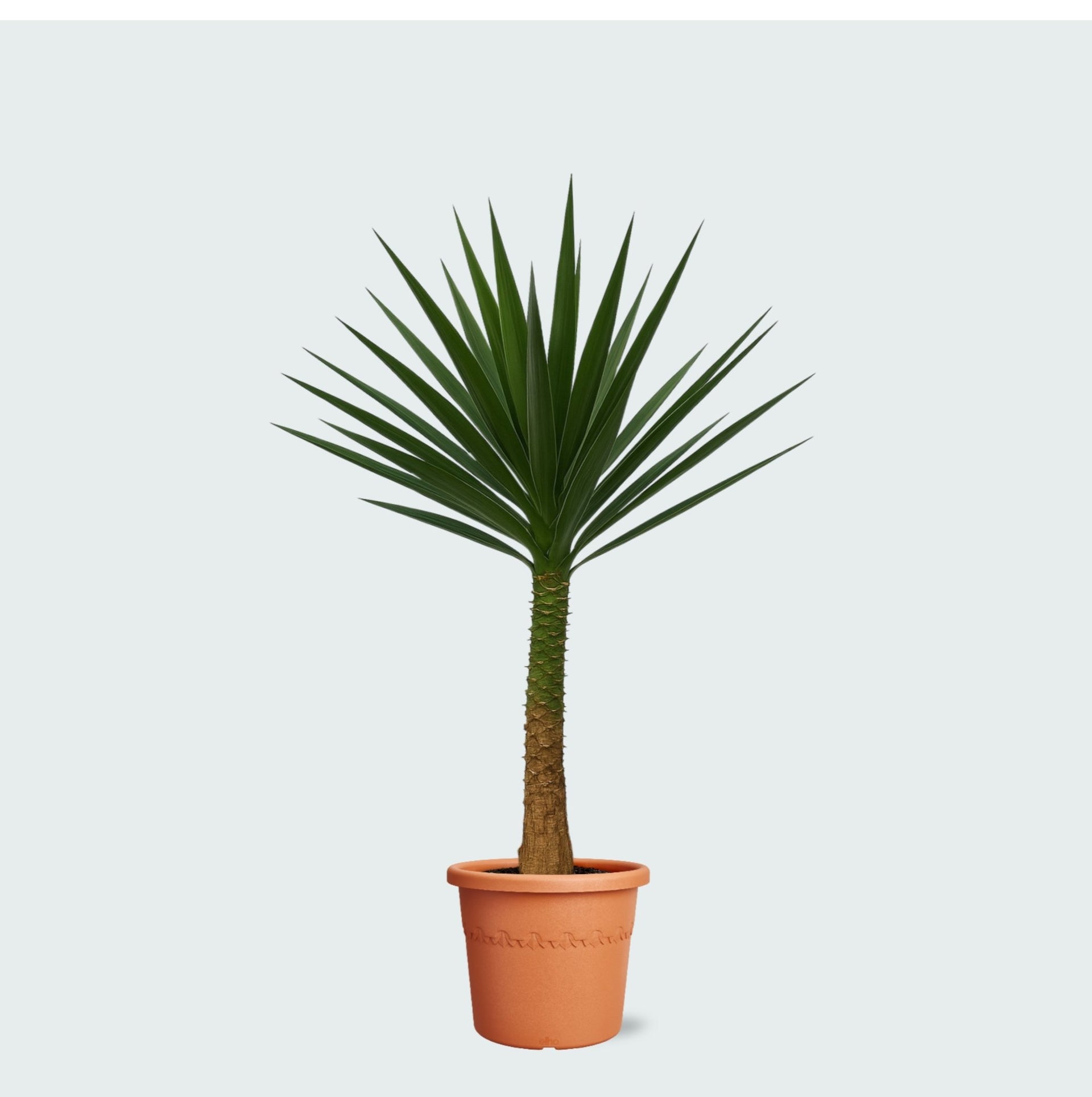 De Yucca Elephantipes staat het liefst op een plek met veel zonlicht. Direct zonlicht is geen probleem – integendeel, het bevordert een compacte groei en sterke bladeren. Zet de plant bij voorkeur op een beschutte plek uit de wind, zodat de bladeren niet beschadigen.